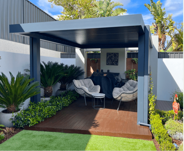 Powder coated with AkzoNobel Brand allows our pergola to resist the harsh environments.