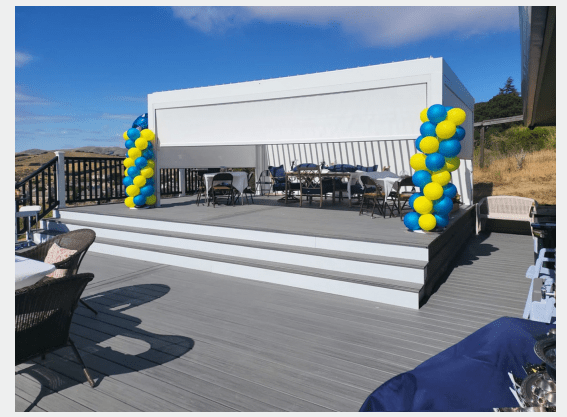 Each pergola comes with built-in rubber seals inside the louver blades that shield against rain water and eliminate any chatter from wind.
